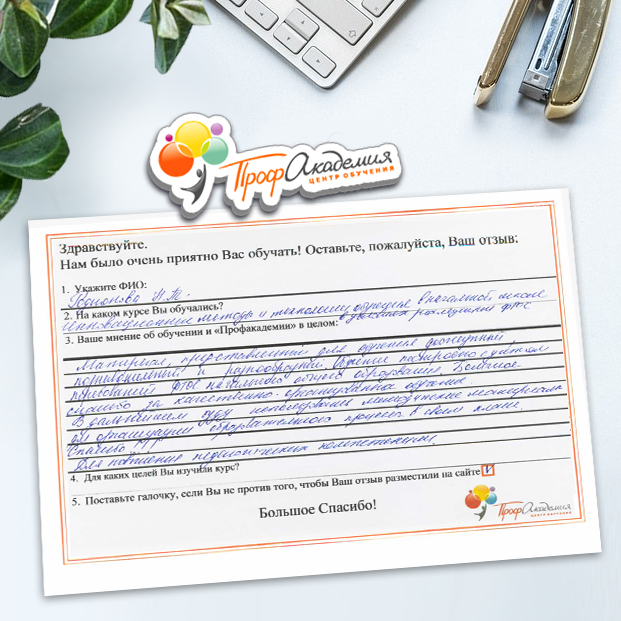 Для прохождения курса администрацией подобран полезный методический материал. Для успешного освоения материала предоставлена вся необходимая информация. Обучение проходило удобно и качественно.